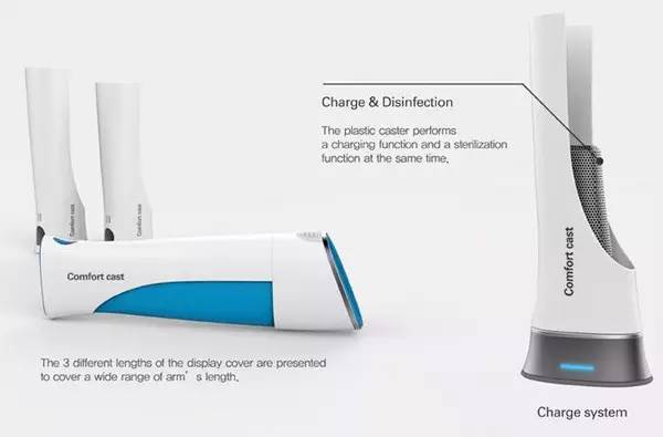 Comfort Cast是一款未來可能會出現的概念設計醫療產品,塑料外殼的內部是一個可調節的氣囊,可以很好的貼合手臂的形狀。Comfort Cast還被賦予了社交功能,好比一款可以登陸facebook的手臂,不但朋友和親人可以隨時鼓勵你給你打氣、加油使你獲得一個良好的心態,醫生也可以隨時和你保持聯系助你早日康復。